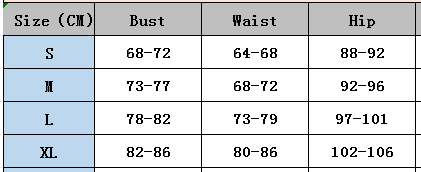 | Size (AUS) | Bust (cm) | Waist (cm) | Hips (cm) |