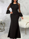 Mesh Fishtail Long Sleeve Formal Maxi Dress