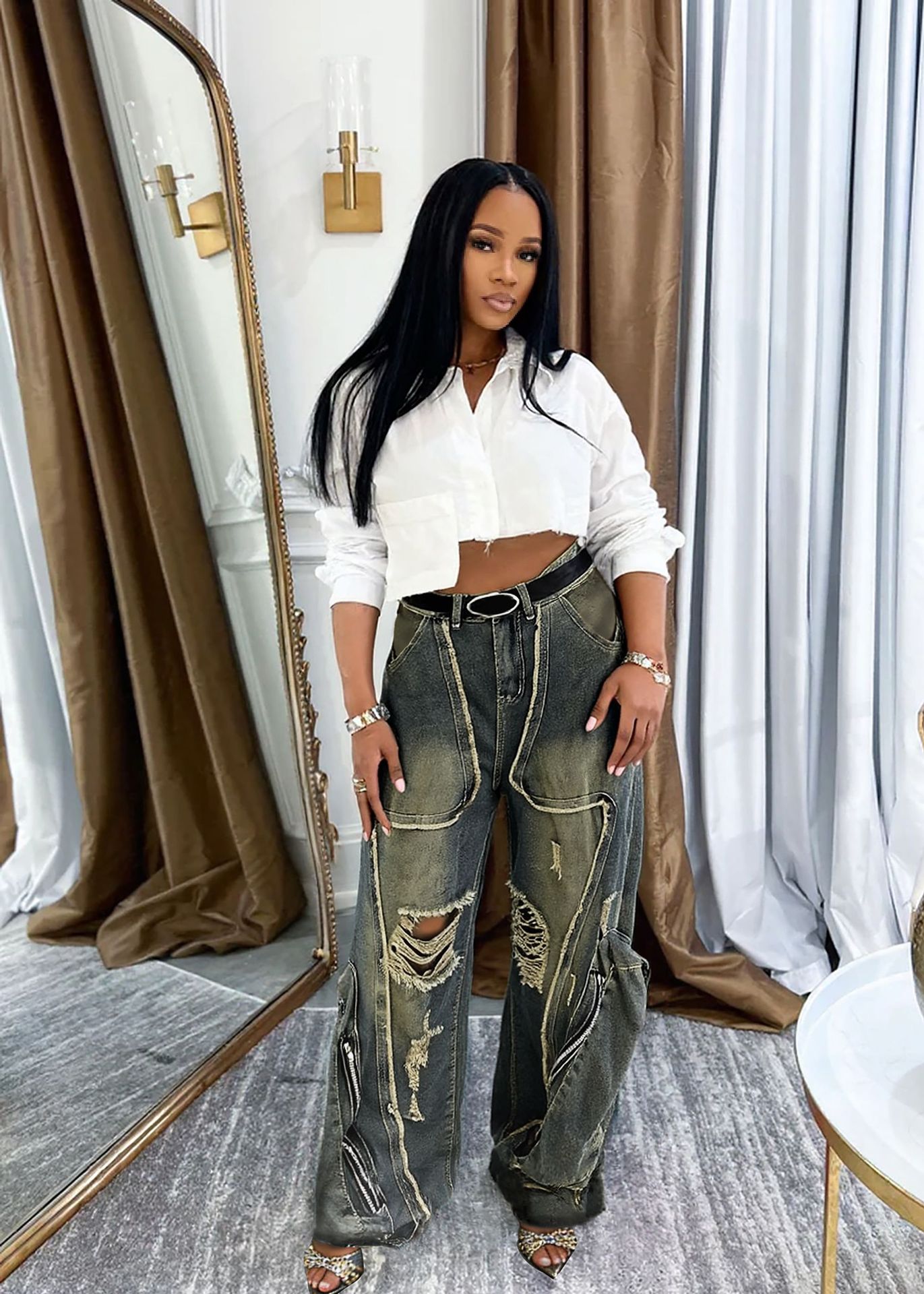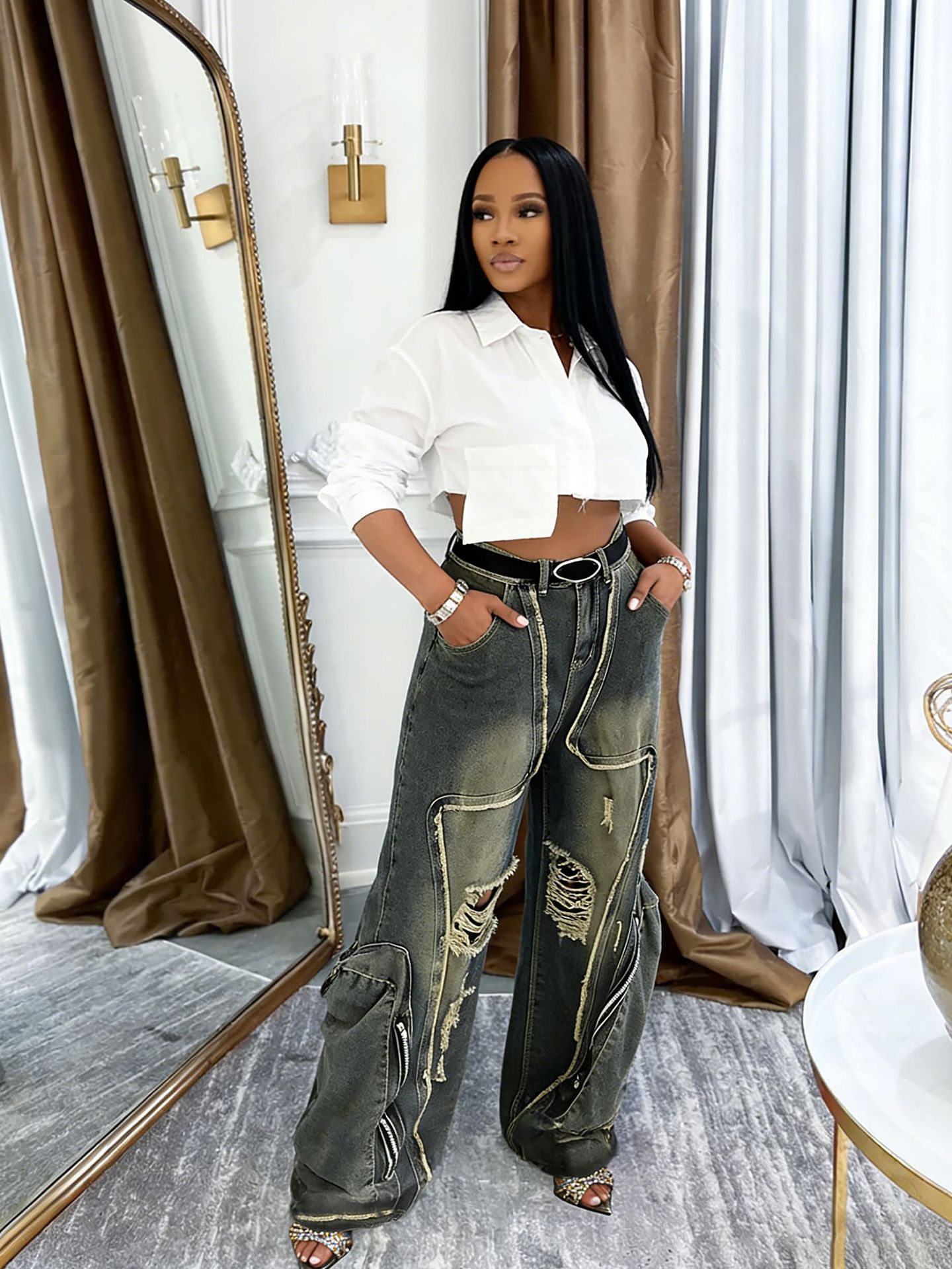 | Product Name | Women Ripped Pocket Cargo Denim Pants |