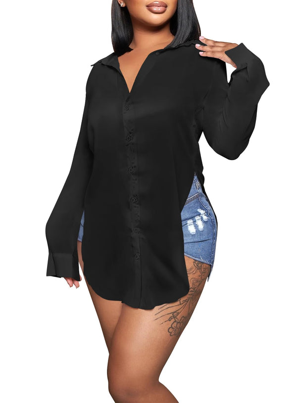 This long sleeve satin button down shirt is made of a premium blend of 95% polyester and 5% spandex. giving it a soft. lightweight. and skin-friendly feel. It is also...
