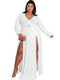 Plus Size Long Sleeve Drawstring Split Maxi Dresses