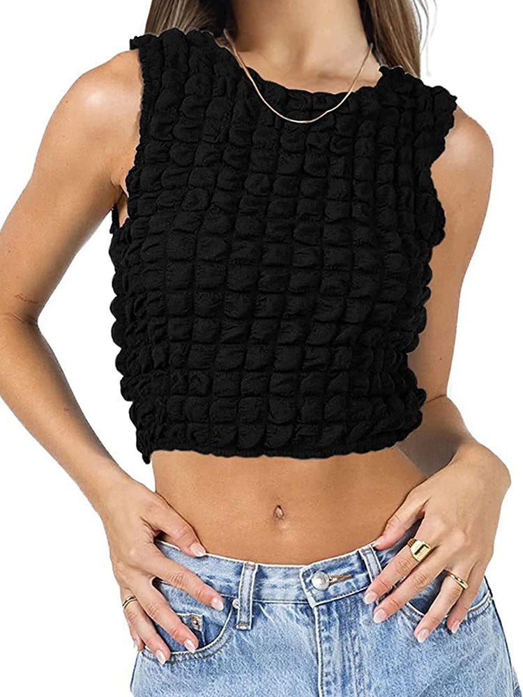 Bubble Sleeveless Round Neck Tank Tops
