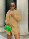Features: Long sleeve. turndown collar. v neck. button down. solid color. lace-up. hollow out. blouse mini dresses.