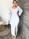 Features:Long sleeve, puff sleeve, split, backless, solid color, bodycon, maxi dresses.