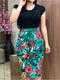 Feature: Floral print, short sleeve, round neck, patchwork, bodycon, midi dresses.