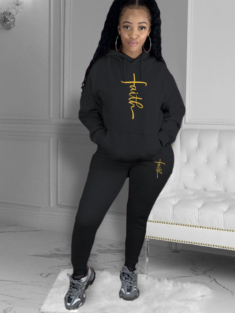 Two Piece Letter Print Hoodie & Long Pants Tiynon