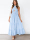 Feature: Sleeveless, backless, halter neck, bandage, ruffle hem, high waist, plaid print, loose maxi dress.