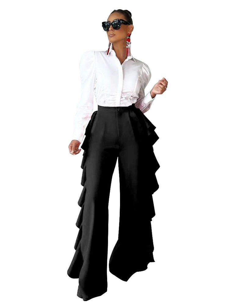 High Waist Ruched Flounce Pants