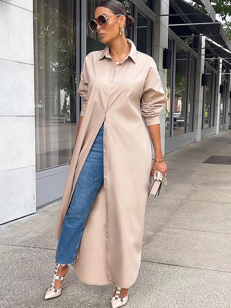 Features: Button up, oversized flowy maxi shirt, open front, asymmetrical hem blouse shirt, long beach cover-up, high low hem, split cut, loose fit, long sleeve, turn-down collar.