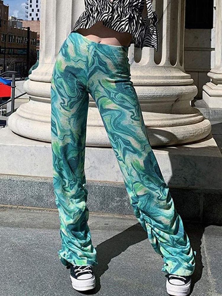 Feature: High waist, flared bell,?straight leg design, zebra print, plaid print, dye-tie, long pantswith pockets.