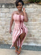 Features:Sleeveless, off-shoulder, print, side split, bodycon midi dress.