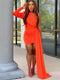 Features: Solid color, one shoulder, long sleeve, ruched, wrap, bodycon, slim fit, mini dresses.