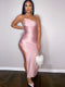 Features: Ruched, Bodycon, Side Slit, Sleeveless, Spaghetti Strap, Adjustable Shoulder Tie, Solid color, Slim Fitting, Midi Dresses.
