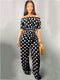 2 Pieces Polka Dot Off Shoulder Crop Top Pants Suits