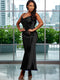 Features:Silk, sleeveless, backless, solid color, floor-length, bodycon maxi dress.
