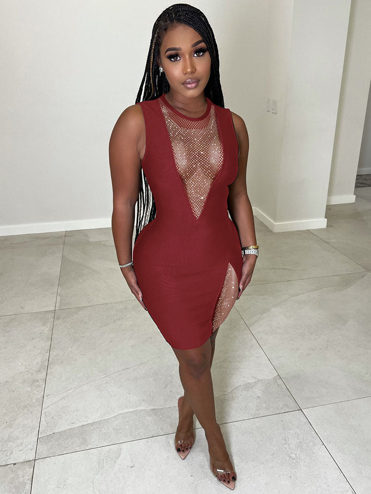 Sleeveless Mesh Patchwork Bodycon Mini Dresses