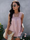 Feature: Sleeveless, shirred straps, tank top, leopard print, loose top.