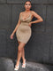Features: Solid color, sleeveless, ruched, backless, bodycon, sexy, slim fit, spaghetti strap, mini dress.