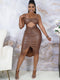 Feature: Sleeveless, coating, wrap, hollow, pleated fitted slit dress, spaghetti straps, solid color, asymmetrical hem, midi dress.