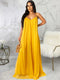 Feature:No pockets. Spaghetti strap is adjustable, solid color, ruched, sleeveless, chiffon, floor-length, loose maxi dress.