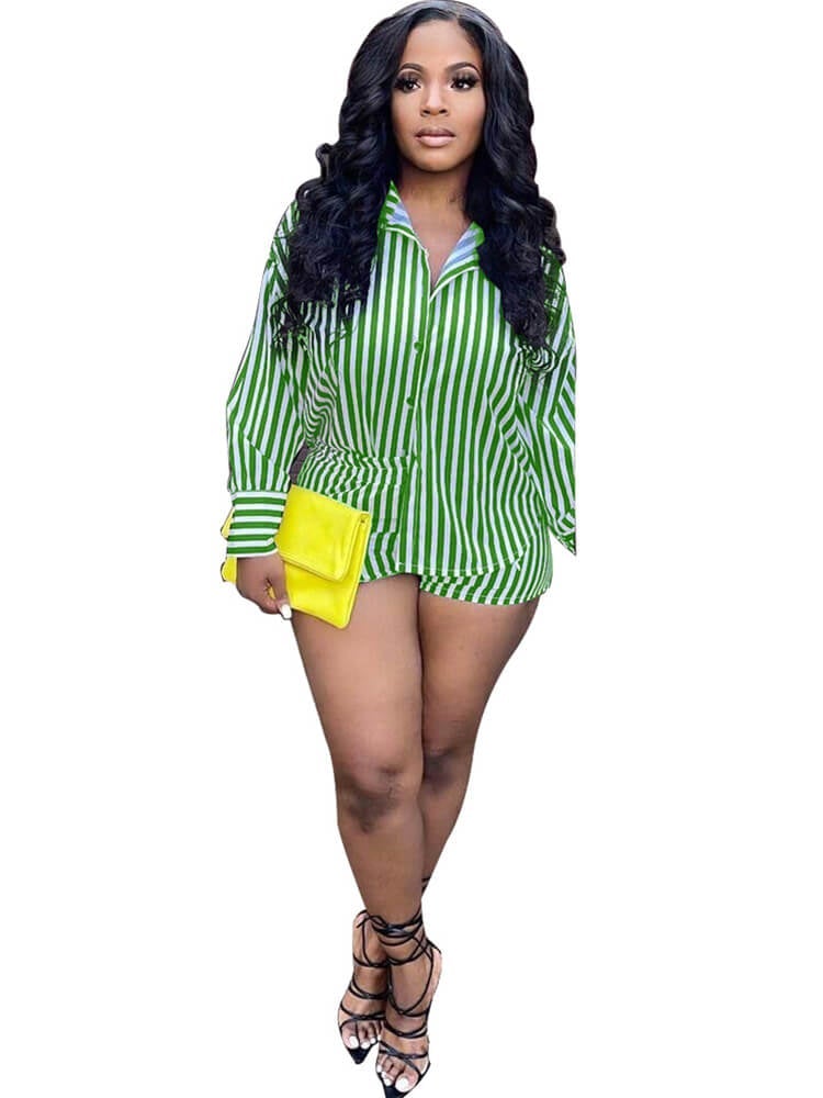 Features: Sexy two-piece outfits for women, long sleeve shirt tops, stripe button-down blouses shirts, skinny high waist shorts pants jumpsuits, biker shorts sets. Stripe printed is fashionable and simple.
