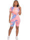 Two Pieces Short Sleeve Tie Dyed Tops+Short Sets