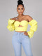 Long Sleeve Off Shoulder Ruffle Crop Top Tiynon